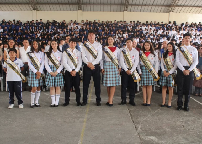 La jornada también estuvo marcada por un emotivo momento de recogimiento en memoria de nuestra querida estudiante Carolina Morocho, quien falleció hace pocos días. En su honor, sus compañeros de segundo de bachillerato formaron una «C» y elevaron globos blancos al cielo, acompañados de una oración por su eterno descanso. Este acto simbolizó el amor y la unión de nuestra comunidad en los momentos más difíciles.