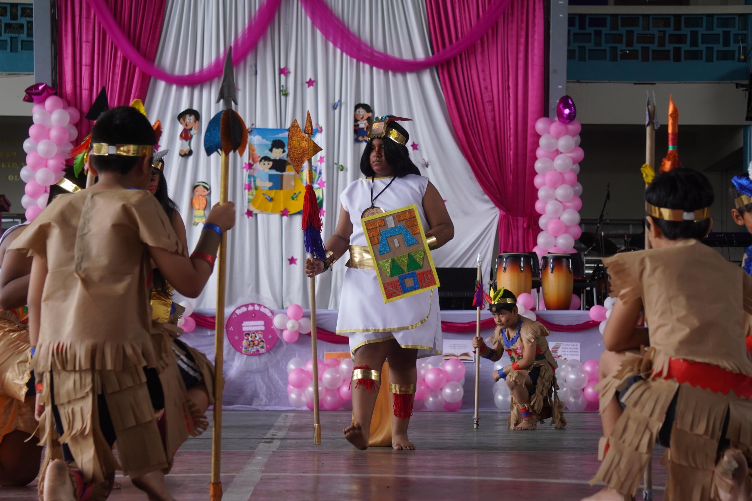Realizaron la representación musical y teatral de «Elegía a la muerte de Atahualpa», donde los niños, caracterizados como incas y españoles, revivieron el episodio histórico de su injusta muerte a manos de los conquistadores. La puesta en escena transmitió el dolor del pueblo inca.