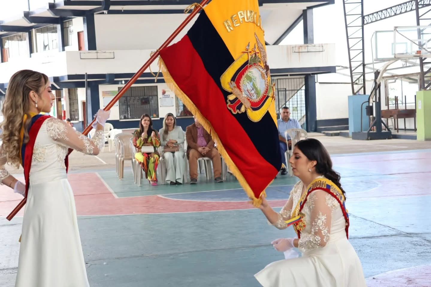 Durante la ceremonia, cada paso y cada promesa reflejaron el esfuerzo, la responsabilidad y la entrega de los jóvenes, quienes con disciplina y dedicación alcanzaron uno de los reconocimientos más importantes de su trayectoria estudiantil. La bandera nacional fue entregada a María Renata Romero Romero. Como portaestandarte de la Ciudad fue proclamada Camila Marín Romero, mientras que Naileth Isabel Feijoó Armijos recibió el honor de ser portaestandarte del Plantel. Las escoltas designadas fueron: Gabriela Mercedes Chamba Romero y Ángela Samira Maldonado Aguirre (Pabellón Nacional), Danna Nicole Córdova Loaiza y Dafne Quispe Aguilar (Pabellón de la Ciudad), y Camila Alexandra Torres Chuico junto a Danna Victoria Córdova Novillo (Pabellón del Plantel).