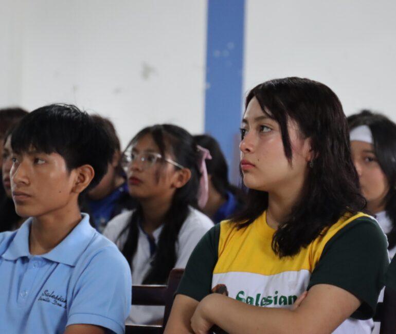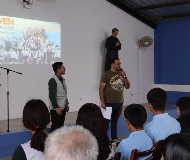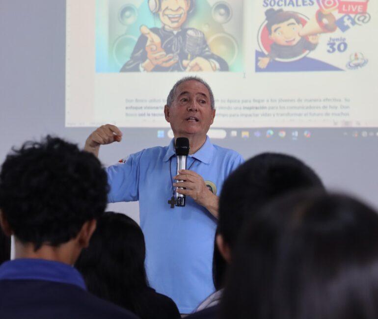 La jornada inició con la intervención del P. José Luis García, vicario de la Comunidad de Macas, quien desarrolló el tema: Don Bosco comunicador. Durante su ponencia, invitó a los jóvenes a vivir la comunicación como una forma de servicio y coherencia de vida: «Jóvenes, ustedes no tienen que limitarse a transmitir información, sino a ser mensaje con la propia vida, como lo hizo Don Bosco», señaló el padre José Luis.