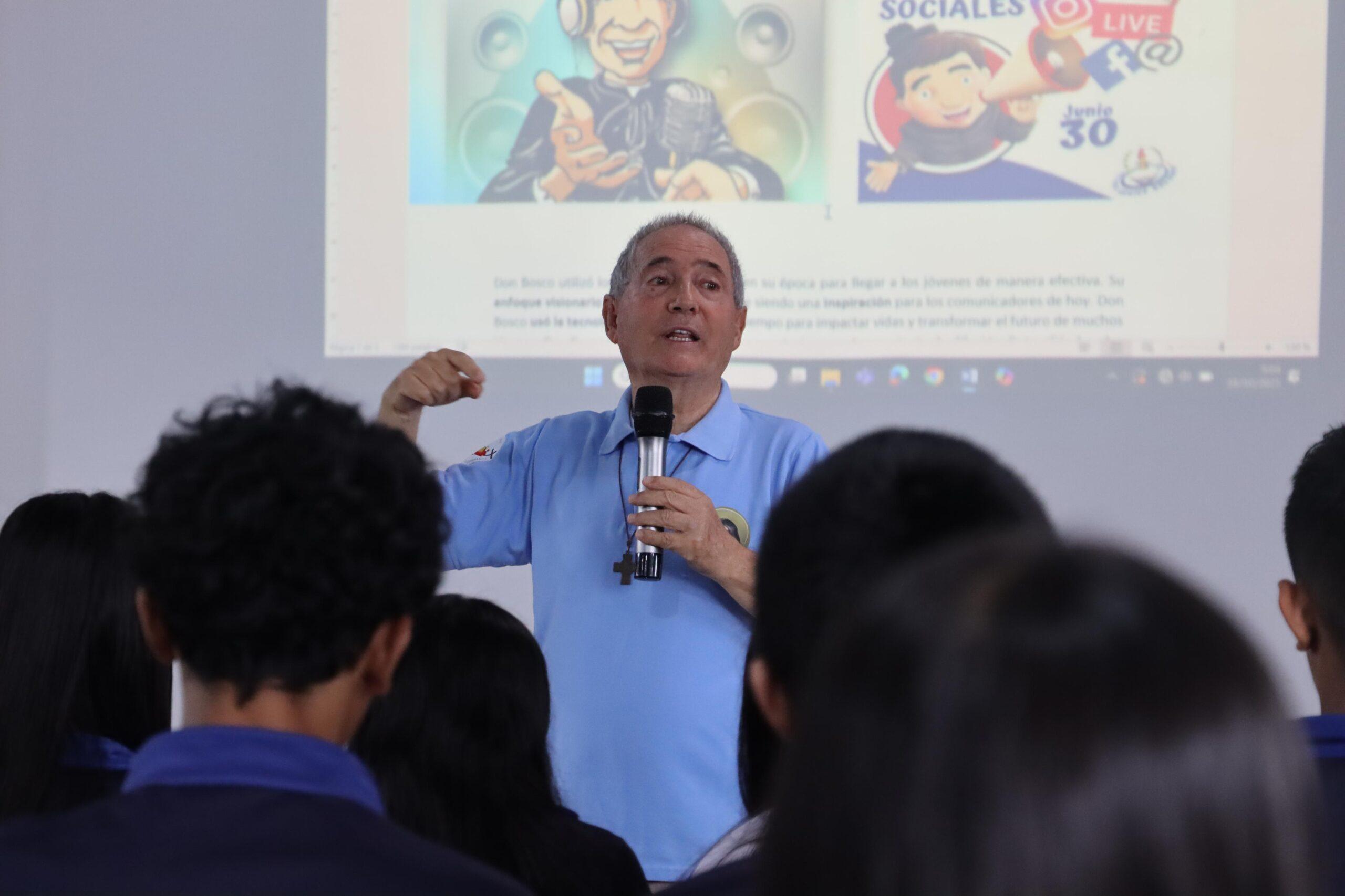 La jornada inició con la intervención del P. José Luis García, vicario de la Comunidad de Macas, quien desarrolló el tema: Don Bosco comunicador. Durante su ponencia, invitó a los jóvenes a vivir la comunicación como una forma de servicio y coherencia de vida: «Jóvenes, ustedes no tienen que limitarse a transmitir información, sino a ser mensaje con la propia vida, como lo hizo Don Bosco», señaló el padre José Luis.