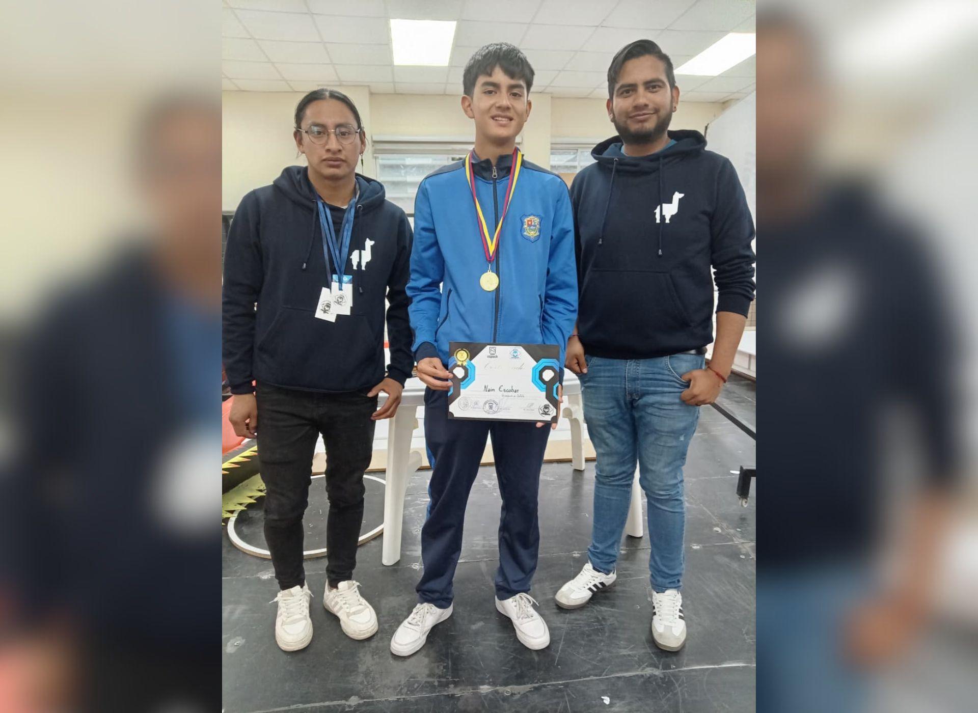 En esta competencia, Naim Escobar, estudiante de 1° BGU de la Unidad Educativa Santo Tomás Apóstol de Riobamba y miembro del grupo de robótica CrespiBot del Movimiento Juvenil Salesiano (MJS), obtuvo el primer lugar en la categoría Simulación de Batalla, destacándose entre más de 20 participantes.