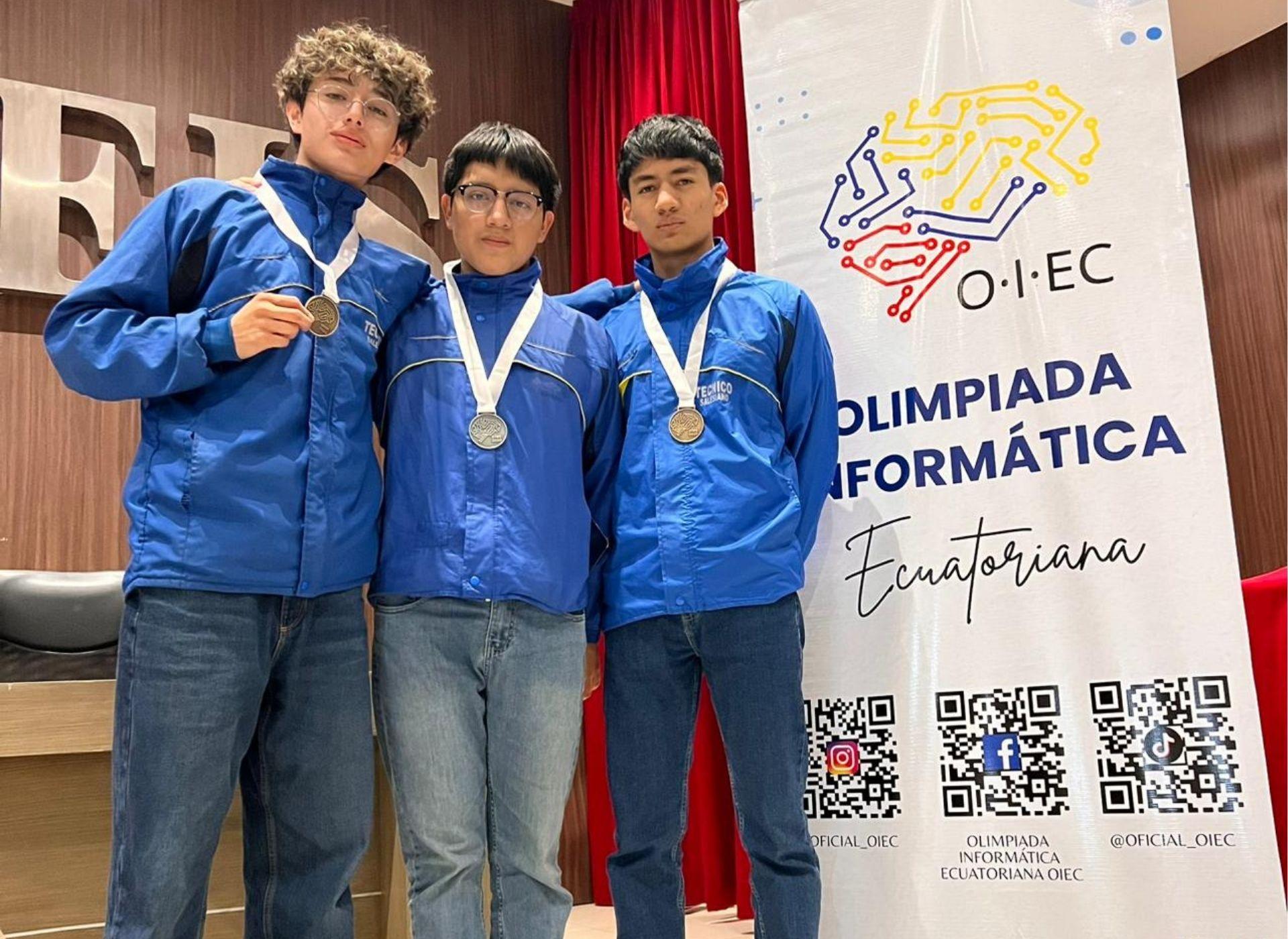 Los estudiantes de la especialidad de Informática de la Unidad Educativa Técnico Salesiano de Cuenca destacaron con un brillante desempeño en la final de la Olimpiada Informática Ecuatoriana, realizada en el Instituto Tecnológico Sudamericano de Guayaquil. En esta competencia, que reunió a representantes de las provincias de El Oro, Manabí, Guayas, Santa Elena y Azuay, los alumnos salesianos demostraron su alto nivel de preparación, obteniendo medallas de plata y bronce.