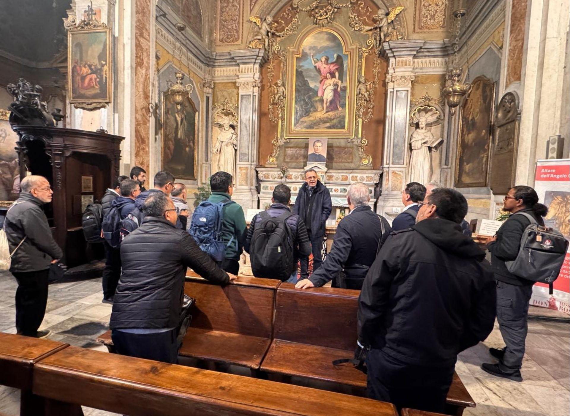 Durante el recorrido, un grupo de directores tuvo la oportunidad de compartir un encuentro fraterno con los misioneros salesianos de la expedición 2025, quienes se preparan para ser enviados a distintas partes del mundo.