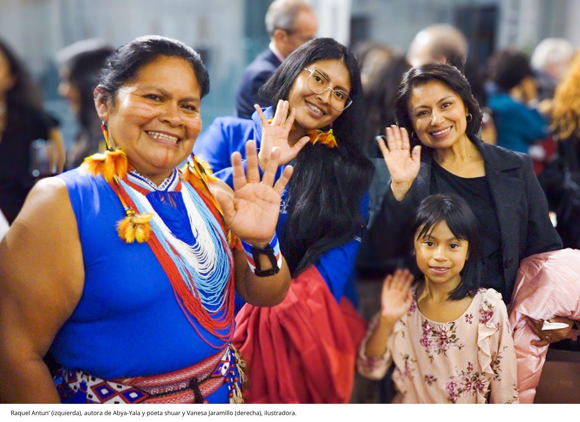 Por parte de los autores, participaron Phillipe Descolá, conocido antropólogo quien, desde París, envió saludos y reconocimientos. Raquel Antun’, poeta shuar y autora, afirmó que «Abya-Yala ha sido un puente entre la selva y el mundo, entre la oralidad y la palabra escrita, entre la memoria y el futuro». Culminó su intervención interpretando un hermosísimo anent shuar inspirado en la capirona, enorme árbol de la selva. Gioconda Herrera, directora de la Facultad Latinoamericana de Ciencias Sociales (FLACSO), habló en representación de los coeditores y se refirió a la fructífera alianza con Abya-Yala. Afirmó que el extenso catálogo de la Editorial ofrece una cartografía que permite mapear los temas cruciales de las ciencias sociales latinoamericanas.