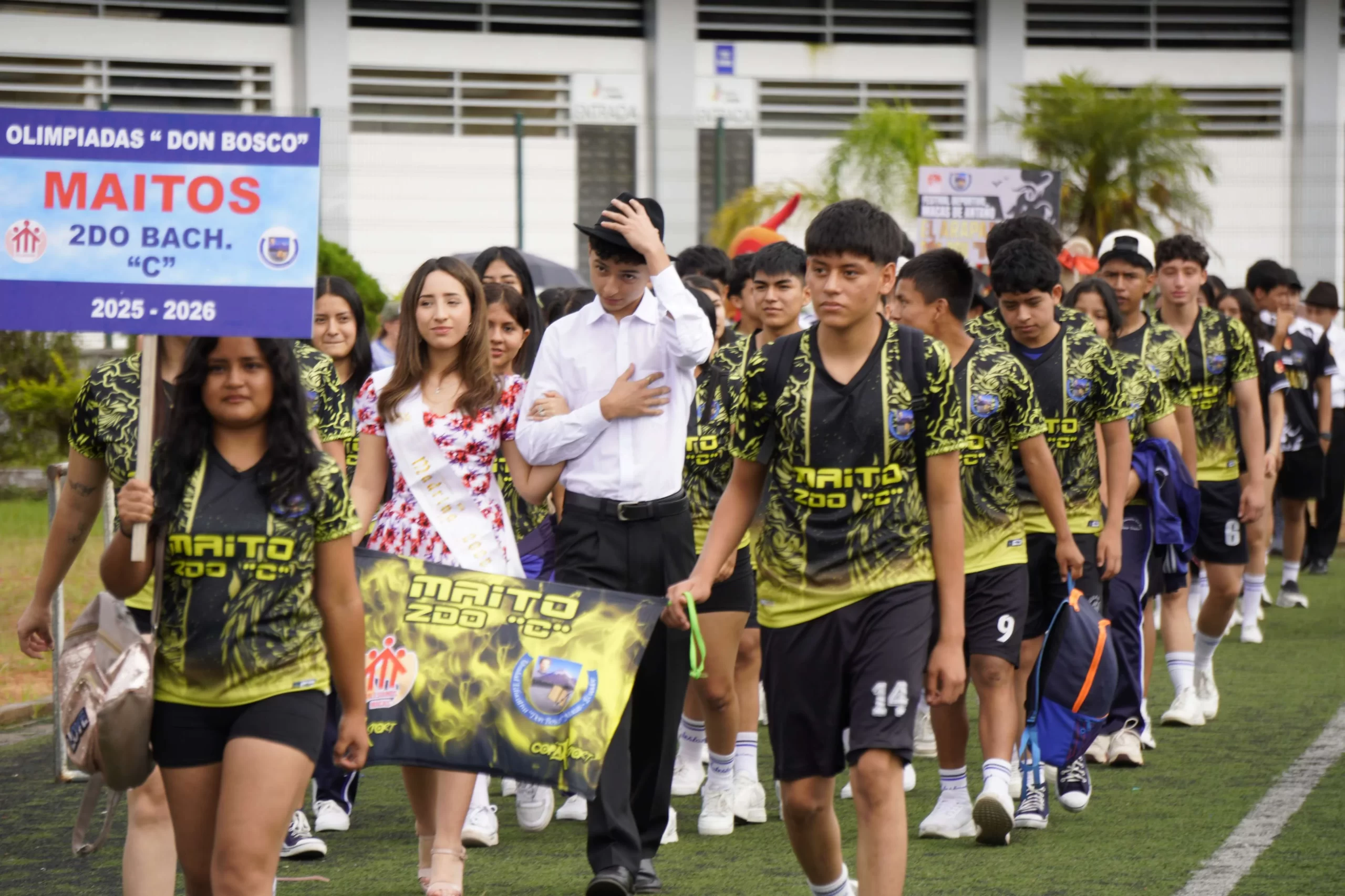 La alegría salesiana se hizo visible en cada detalle: equipos con nombres de elementos típicos de la cultura macabea, uniformes creativos, barras organizadas y una participación entusiasta de niños y jóvenes que dieron vida al festival. La destacada presencia de la banda rítmica y las bastoneras engalanó el acto inaugural, marcando el paso de las delegaciones y dando un marco festivo y solemne al encuentro, propio del estilo de Don Bosco.