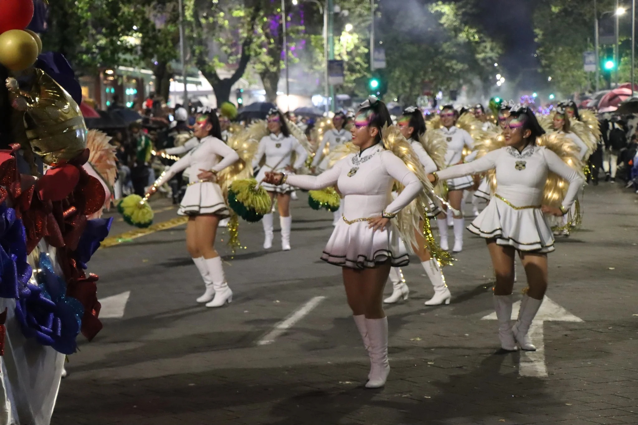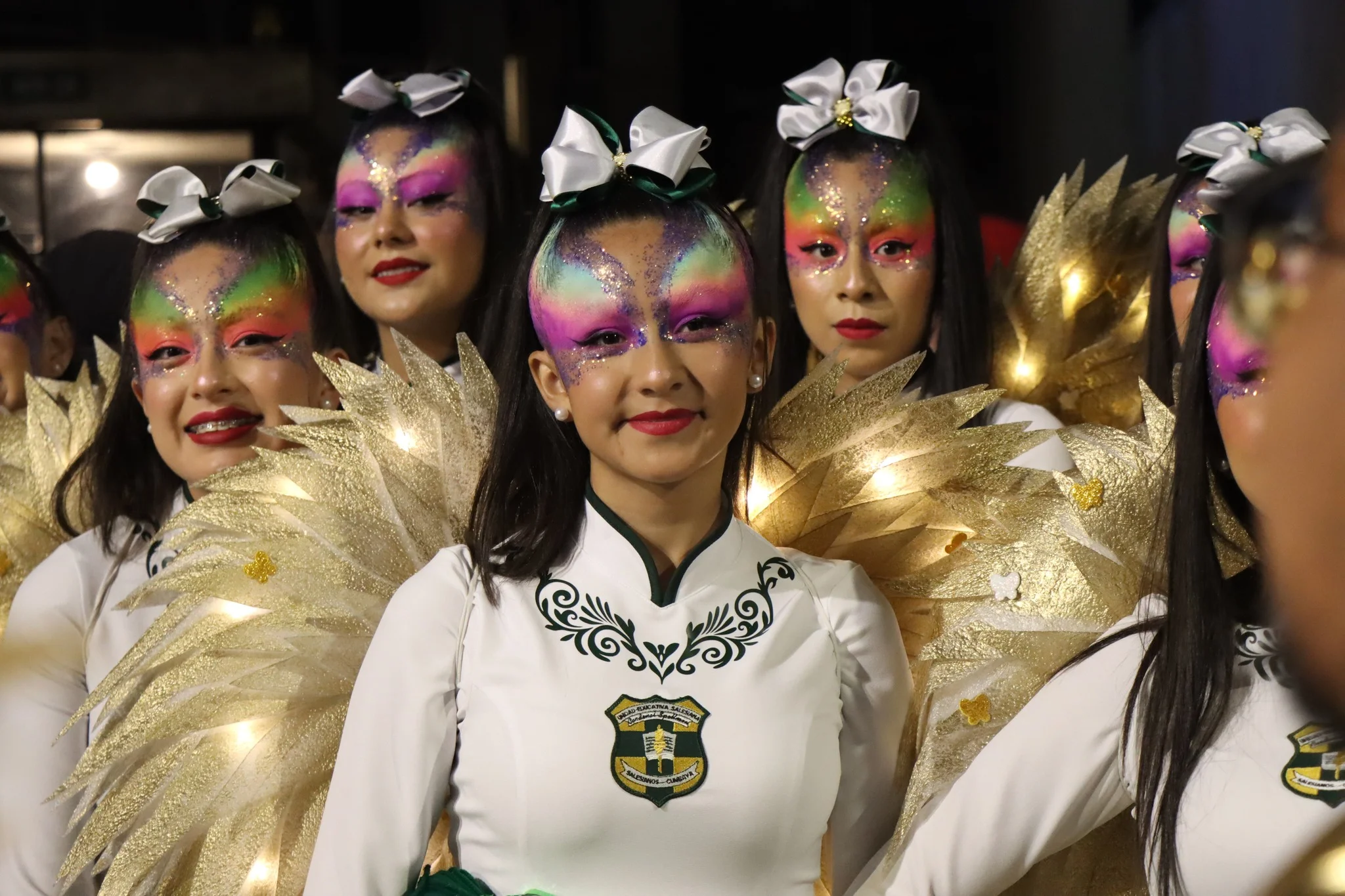 Para nuestras estudiantes, este desfile no solo fue una presentación más, sino una oportunidad de vivir de cerca una manifestación cultural que conecta generaciones. El contraste de la noche permitió que el brillo de sus rutinas resalte aún más, generando un espectáculo que fue aplaudido por quienes asistieron al recorrido.