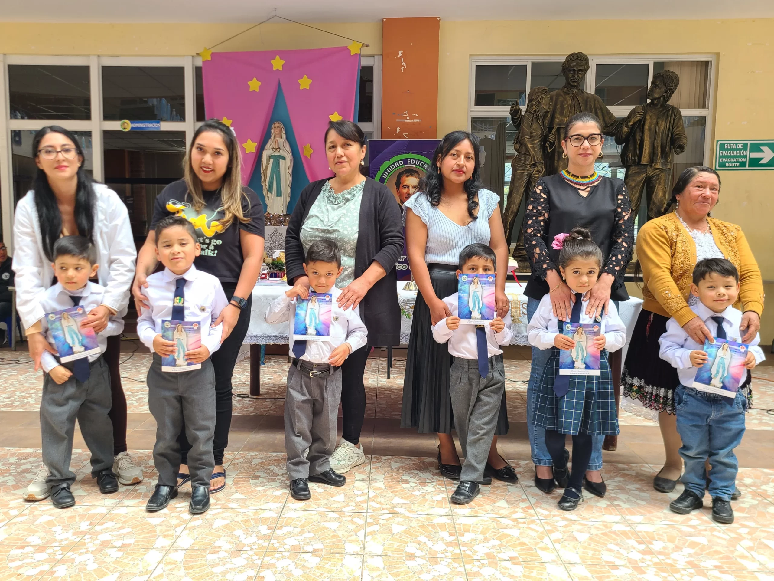 En este ambiente de recogimiento, la ceremonia se desarrolló con un profundo sentido de comunidad. Los niños y docentes que ingresan por primera vez a la institución fueron presentados y consagrados a la Virgen de la Inmaculada Concepción, gesto que simboliza su acogida oficial a la familia salesiana. Este momento, lleno de fe y ternura, recordó a toda la comunidad que el camino educativo se construye desde la espiritualidad, la confianza y el acompañamiento mutuo.