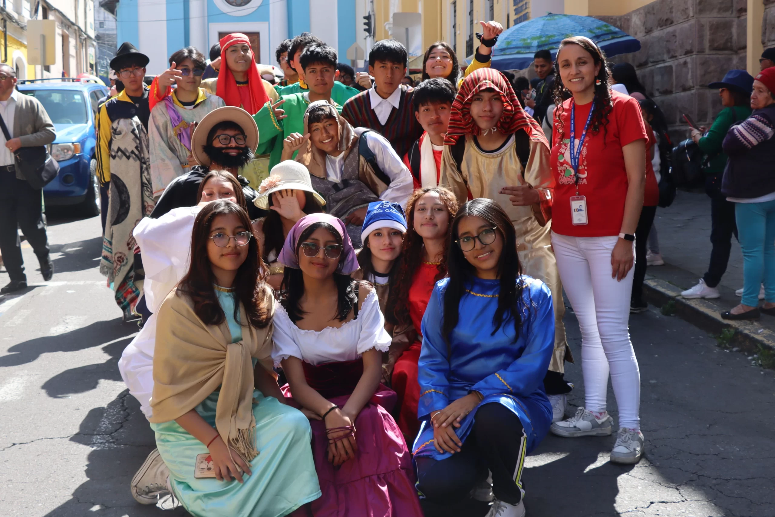 La Eucaristía estuvo acompañada de expresiones artísticas que llenaron de color y emoción la celebración: danzas, villancicos y la participación entusiasta de los estudiantes, quienes demostraron que la fe también se expresa a través de la alegría y la creatividad. Uno de los momentos más esperados fue el tradicional pase del Niño Jesús, que recorrió las calles del barrio La Tola. Los niños, vestidos de angelitos, pastores, reyes magos y animalitos del pesebre, llevaron un mensaje de paz al corazón del barrio, recordando la tradición salesiana de encontrarse con la comunidad más allá de las paredes de la institución.