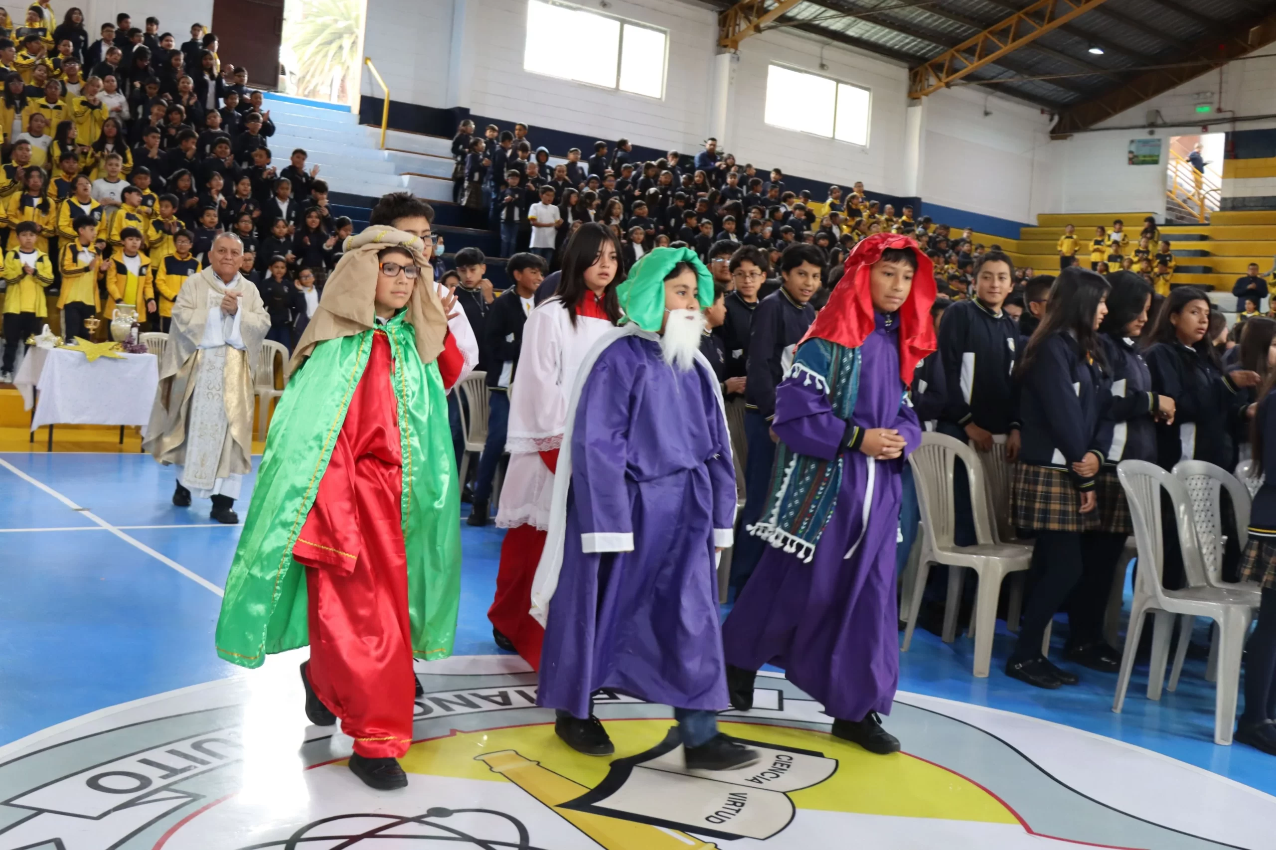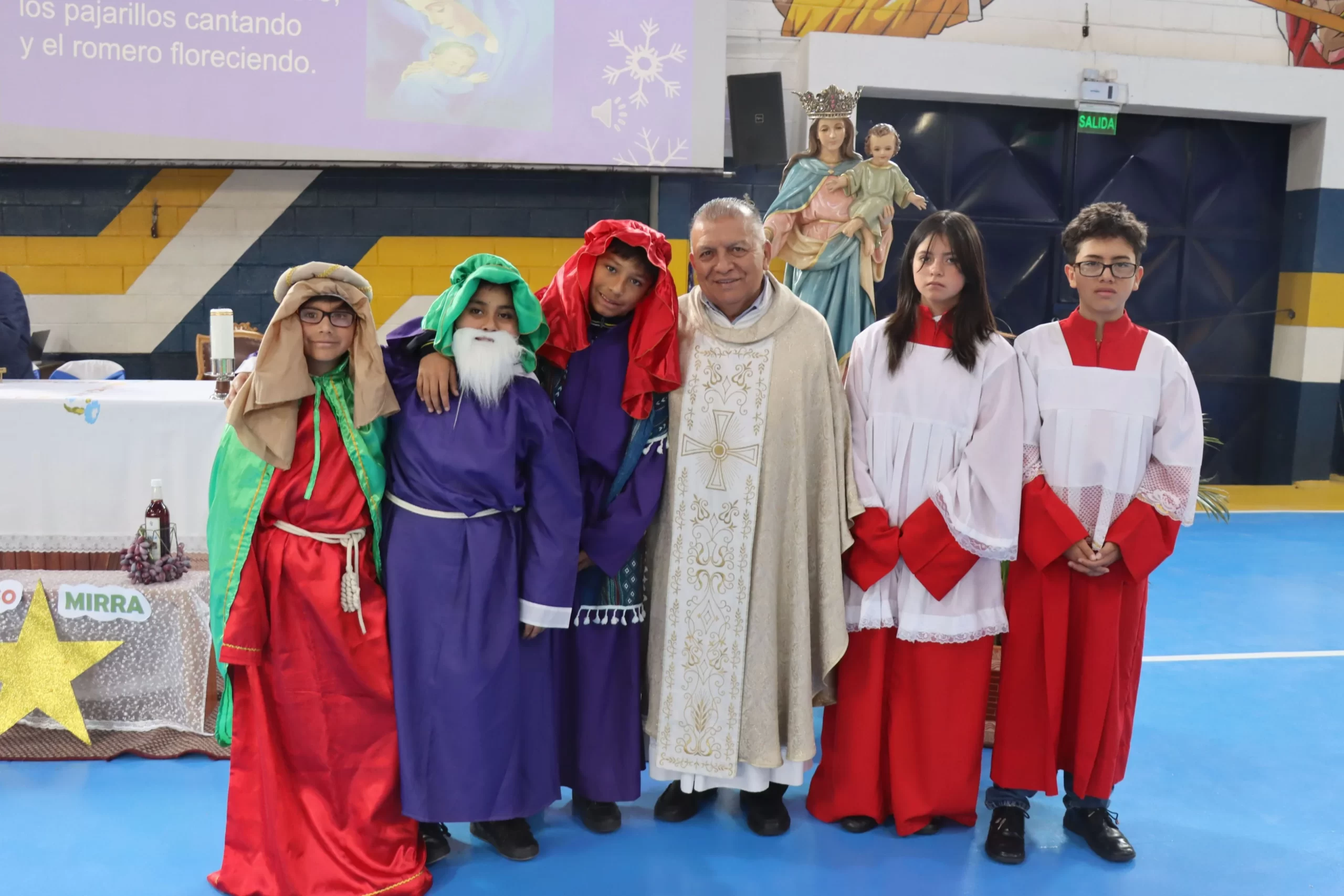 Este gesto fue representado en el momento de las ofrendas, cuando los estudiantes, con profunda reverencia, presentaron estos mismos elementos como signo de adoración y compromiso. El oro como símbolo de la realeza de Cristo, el incienso como señal de su divinidad y la mirra como profecía de su entrega y sacrificio.