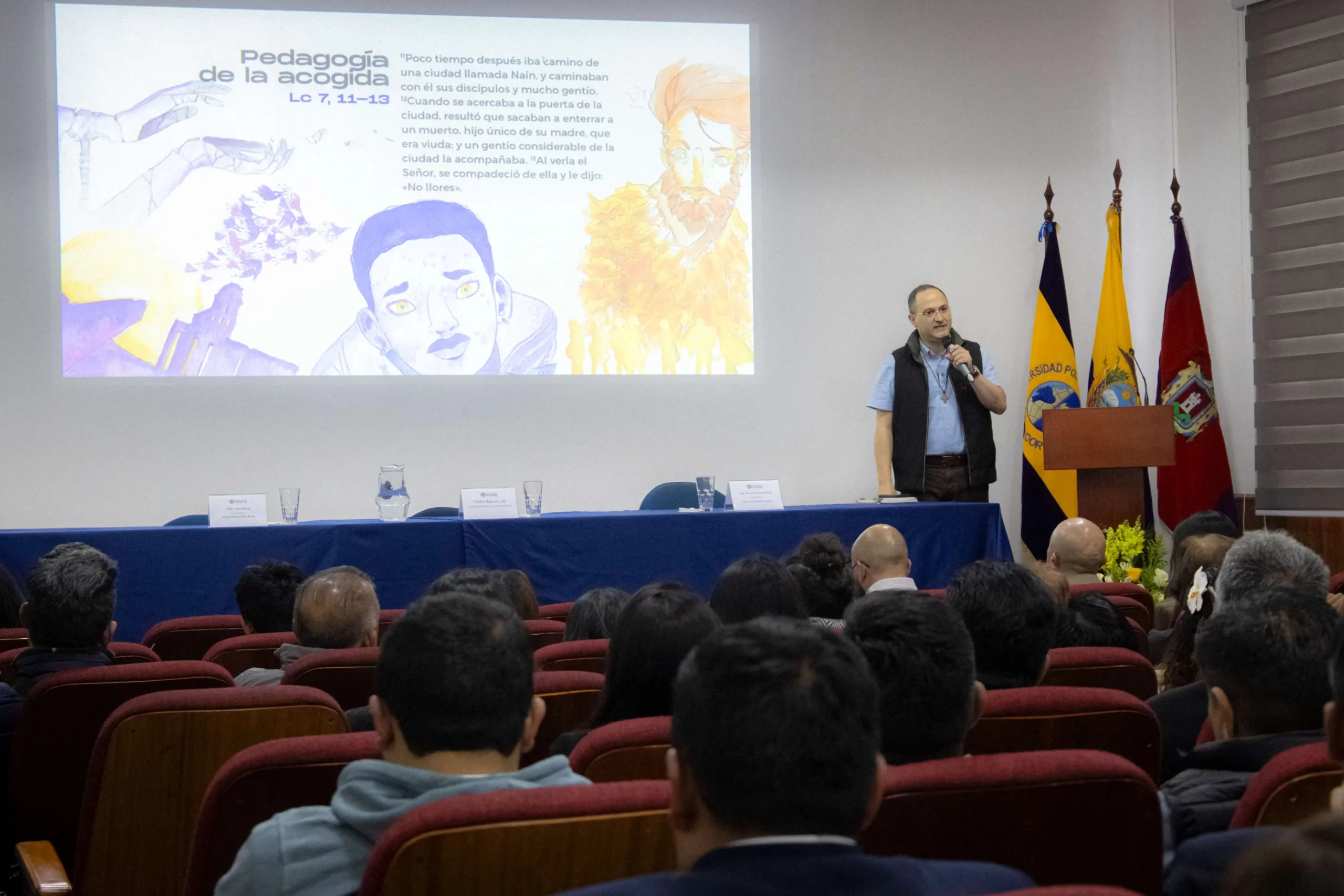 Durante la presentación, el P. Juan Cárdenas, rector de la UPS, señaló que la guía es el resultado del proyecto de investigación Jóvenes, violencia y cultura de paz, participación y habilidades sociales de jóvenes en contextos de vulnerabilidad, impulsado desde un trabajo corresponsable entre la UPS y la oficina de la RASS. Indicó que el documento no responde a una indagación únicamente conceptual o especulativa, sino que recoge las voces de los propios sujetos del Proyecto Salesiano Ecuador y de otros ámbitos. Asimismo, subrayó que este material forma parte del modelo educativo salesiano, especialmente desde el pilar de la amorevolezza o amabilidad. «Estamos siendo coherentes con seguir poniendo en diálogo nuestro modelo educativo con estas nuevas realidades, con estos nuevos enfoques, con estas nuevas necesidades».