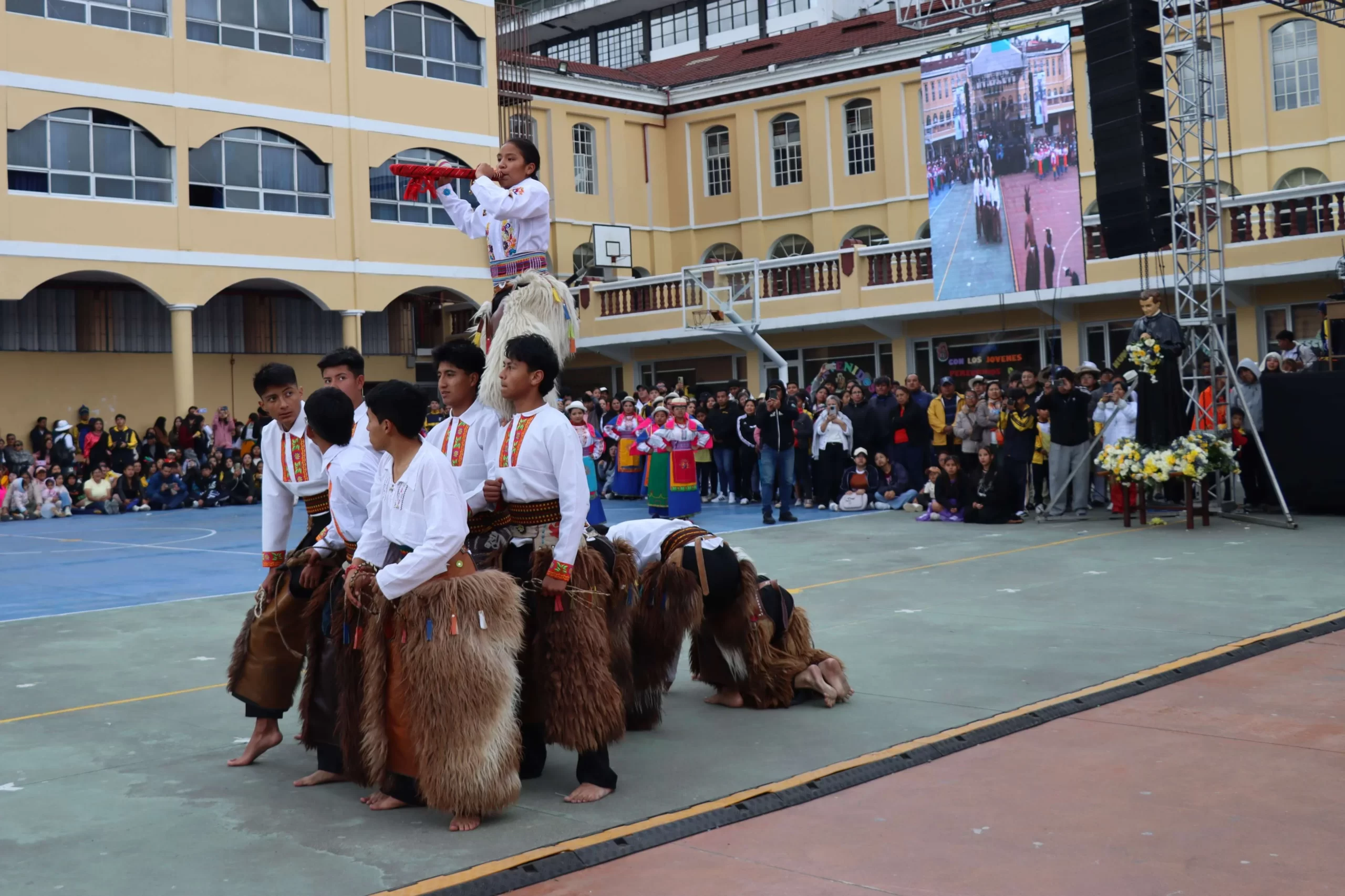 Durante toda la tarde, desde Inicial I hasta tercero de Bachillerato, los estudiantes protagonizaron presentaciones de danzas típicas del Ecuador, vistiendo trajes coloridos que representaron la riqueza cultural del país. Cada coreografía se convirtió en una expresión viva de identidad, respeto y valoración de las tradiciones, reflejando el compromiso educativo de formar integralmente a los jóvenes.