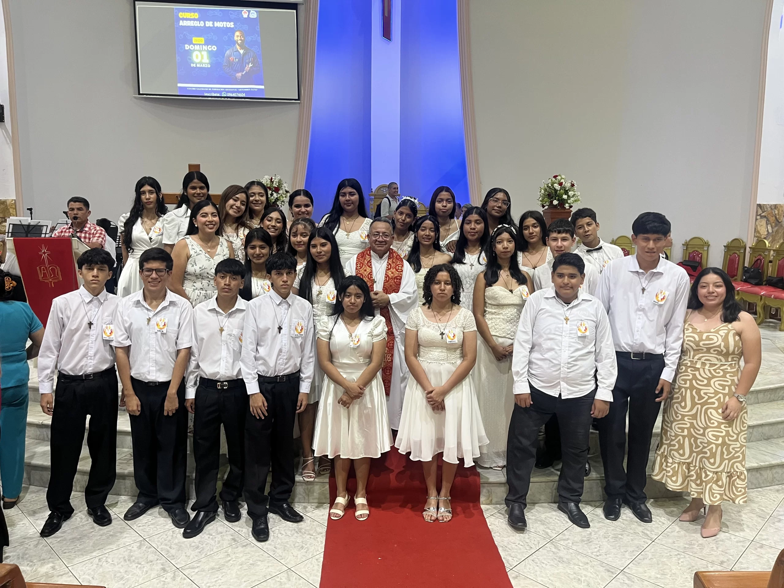 Un total de 180 jóvenes y adultos de la parroquia recibieron el Sacramento de la Confirmación, culminando un proceso de formación catequética y preparación espiritual. La celebración fue presidida por Mons. Vicente Saeteros.