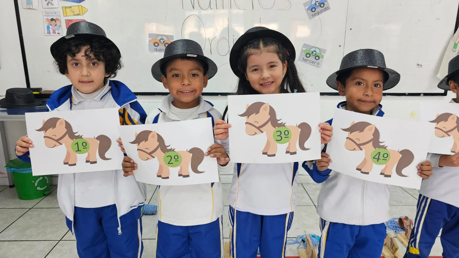 El aprendizaje de las vocales, por ejemplo, se refuerza mediante dinámicas como «cazar mosquitas», actividad que combina reconocimiento visual, coordinación y participación grupal. De igual manera, los números ordinales se comprenden a través de divertidas carreras de caballos, donde los niños identifican posiciones mientras experimentan la emoción del juego. Para fortalecer el conteo, las aulas se transforman en un pequeño supermercado, utilizando frutas y materiales didácticos que facilitan la asociación entre cantidad y número.