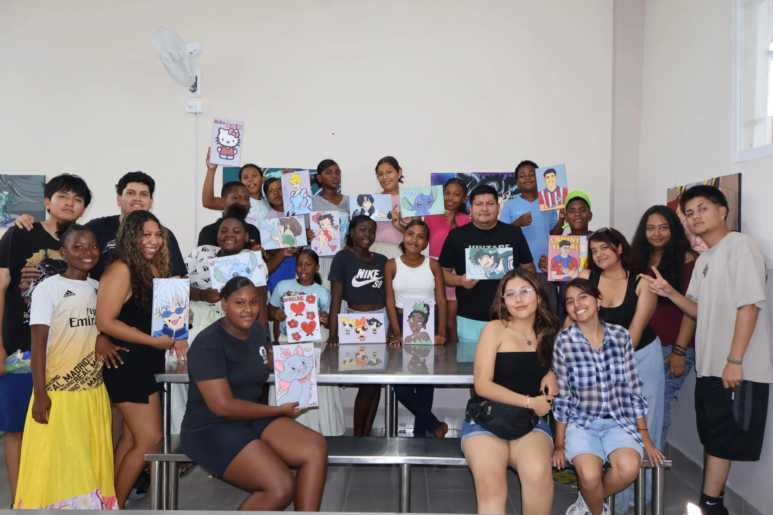 Durante el taller, niños, adolescentes y jóvenes exploraron técnicas de pintura acrílica, aprendiendo sobre el uso del color, las mezclas, las texturas y la composición. Más allá de la técnica, cada trazo sobre el lienzo se convirtió en un medio para expresar emociones, contar historias y descubrir capacidades que, en muchos casos, permanecían ocultas. El arte se transformó en un lenguaje liberador, capaz de fortalecer la autoestima y fomentar la confianza en sí mismos.